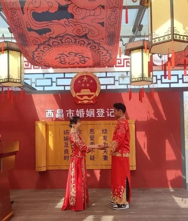2023年2月14日,西昌市民政局婚姻登记处迎来了新年第一个结婚登记“高峰日”,全天共新办结婚登记132对,补领结婚登记4对。